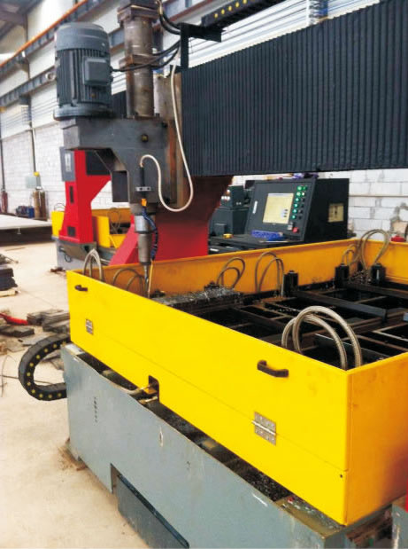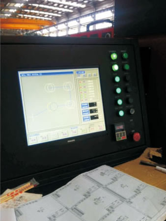 该机床由床身、可移动的龙门架、钻削头、可转换工作台、电控系统、液压系统、冷却系统、排屑器等几部分组成。采用CNC数控系统,X、Y轴交流伺服控制,Z轴液压自动进给,实现快速定位、钻孔,广泛适用于钢结构的联接板及各类板状零件的钻孔加工。
