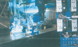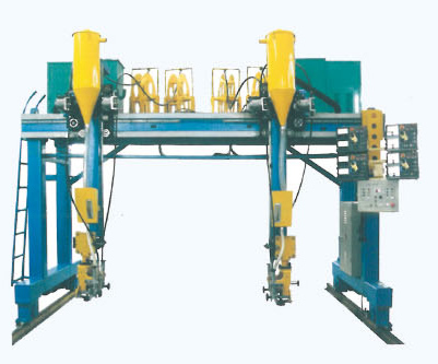 本机主要用于对香形梁工作进行埋弧焊接。箱形梁工件在经过气保打底焊、电渣焊以后,送人埋弧焊接位置,使其焊缝为平焊位置;调节升降焊臂及焊枪装置使埋弧焊枪的焊醉对准焊缝,同步启动焊接电源与主机行走,即可对箱形梁坡口焊缝进行的自动埋弧焊接,机器具有操作使用方便,进行平稳、工效高等优点。