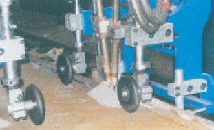 本机行走速度由交流变频调速控制,以适应不同焊接速度的需要,升降焊臂及移动拖板安装在横梁上,焊机的送丝机装于升降焊臂的顶部,焊枪机械跟踪装置装于升降焊臂的下部。通过电机及传动装置可使升降焊臂作上下或左右移动,以便更好调节和控制焊枪位置、以适应不同规格工件的焊接。升降臂共有两组,每组升降焊臂均配置双弧双丝焊头,实现单面两条焊缝同步焊接。