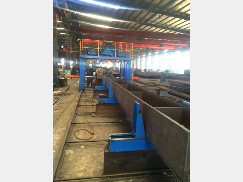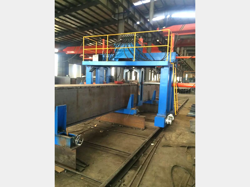 本机主要由导轨、行走驱动装置、机架与平台、上压紧装置、侧压紧装置、液压系统、电控系统等部件组成。本机为手动操作,采用工件不动,主机移动的方式,与工件移动,本机不动相比,主机移动的定位效果更加准确。本机主要用以完成U型组立和箱型组立。本机适用工件尺寸可根据客户需求定制。